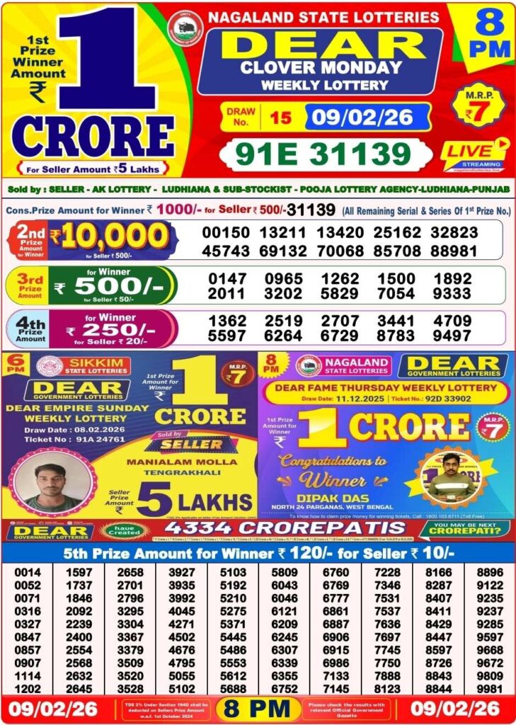 Dear Lottery Sambad refers to the official result bulletin published after Dear Lottery draws conducted under authorized state lottery systems, including Nagaland Dear Lottery Sambad. The word “Sambad” means news or announcement, and in the lottery world, it represents verified and publicly released winning numbers. The Dear Lottery Sambad Today update is one of the most searched lottery queries. Players usually check results immediately after the draw is completed. Common searches include Today Dear Lottery Sambad, Aaj Ke Dear Lottery Sambad and Dear Lottery Sambad Result. Results are published shortly after the draw through authorized channels and trusted lottery platforms.